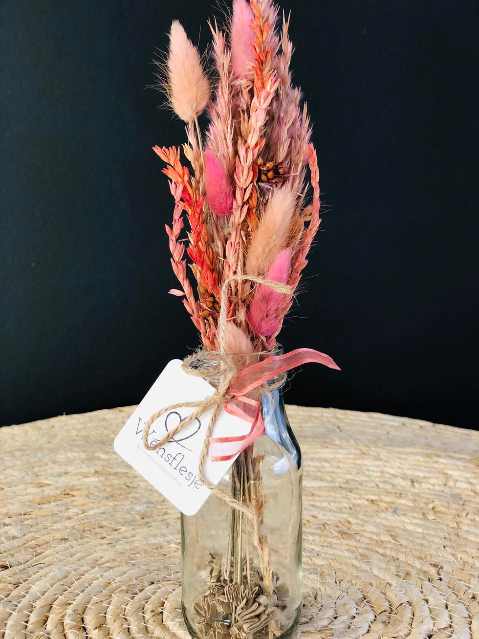 Wensflesje " Roos armbandje met zon, maan of ster"